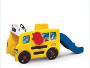 Little Tikes School Bus Activity GymThe School Bus Activity Gym is small enough for the littlest climbers, but big in fun! Little students will learn to have lots of fun, indoors and out! This activity gym features tires that really spin, an interactive dashboard, spinning steering wheel, and 18" slide. The stop sign even folds in and out just like a real school bus.