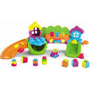 รางรถเลื่อนสนุกสนานพร้อมเสียงเพลง และไฟระยิบระยับ ในเมืองของเจ้าหุ่นบล็อคให้คุณหนูได้ส่งพวกเขาขึ้นรถเลื่อน หรือไถลลงลิฟท์ได้จากกลไลบังคับตามหลักแรงโน้มถ่วงให้ไหล ให้ล่วงได้ตามต้องการ และยังมีกงล้อให้เจ้าตัวน้อยได้หมุนๆ สปินๆเพื่อให้เกิดเสียงเพลง และเจ้าพวกหุ่นบล็อคก็จะเต้นขยับขึ้นขยับลงตามเสียงดนตรีอีกด้วย และเมื่อคุณหนูเล่นเสร็จแล้วยังสามารถสอนให้มีระเบียบเก็บของเล่นให้เรียบร้อยได้อีก