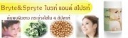 ผลิตภัณฑ์ Bryte & Spryte ไบรท์ แอนด์ สไปรท์ ค้นพบผิวขาว กระจ่างใสใน 4 สัปดาห์ ผลิตภัณฑ์เสริมอาหารเพื่อผิวขาวใสอย่างเป็นธรรมชาติ ประกอบด้วยสารต้านอนุมุลอิสระสกัดจากเปลือกสนฝรั่งเศส กลูตาไธโอน และโปรตีนสกัดจากถั่วเหลือง