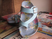 sb04 รองเท้าแตะ ใส่สบาย สีฟ้า ลายดอกไม้ เบอร์ 27 ราคา 200 บาท พร้อมสายรัดสีดำกันหลุด