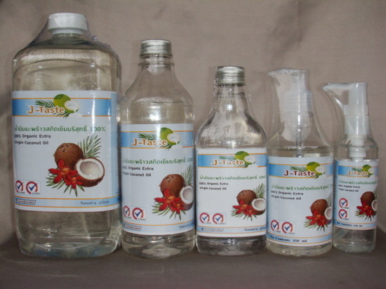 -น้ำมันมะพร้าว สกัดเย็นบริสุทธิ์ 100% เกรดพรีเมี่ยม ตรา เจเทสต์ สำหรับรับประทาน และใช้กับผิวหนัง และเส้นผม มี 5 ขนาด คือ 100ml., 250 ml., 500 ml., 1000 ml.(1 ลิตร) และ 5000 ml.(5 ลิตร)