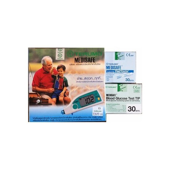 เครื่องตรวจน้ำตาล/เครื่องวัดน้ำตาล ยี่ห้อ Terumo medisafe + กระเปาะและเข็มตรวจ 30 ชุด ราคาพิเศษ ใช้งานง่าย เจ็บน้อย