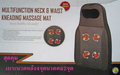 1. เบาะนวดไฟฟ้าแบบลูกกลิ้ง เต็มตัว มี 4 จุด บริเวณต้นคอ 2 จุด แบบอินฟราเรด ใช้นวดได้ดี สะดวกต่อการใช้งาน สำหรับใช้งานไฟบ้านเท่านั้น (ไม่มีสายชาร์ตในรถยนต์)