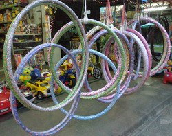 ฮูลาฮูปเพื่อสุขภาพ มีหลายขนาด หลายรูปแบบทั้งแบบเเข็ง หุ้มผ้าแบบแข็ง หุ้มผ้าแบบนุ่ม น้ำหนักหลากหลาย ราคาตั้งแต่ 40 บาทขึ้นไป ทุกวงใส่น้ำอย่างเหมาะสม