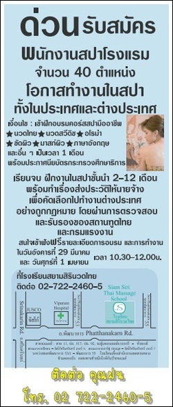 โอกาสทำงานในสปา ทั้งในและต่างประเทศ