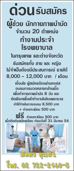 ด่วน รับสมัครผู้ช่วยนักกายภาพบำบัด 20 อัตรา