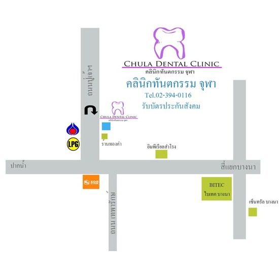 Tel: (+66)2 394 0116, 02-394-0116 (เพื่อความสะดวกของท่านกรุณาโทรนัดเข้าพบทันตแพทย์ตั้งแต่เวลา 9.30-17.30น.)