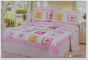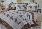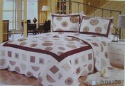 เป็นสินค้านำเข้า ใน 1 ชุด ประกอบด้วยผ้าคลุมเตียงขนาด 6-8 ฟุต และปลอกหมอน 2 ใบ เป็นผ้าพิมพ์ลายทั้ง 2 ด้าน ผลิตจากผ้าฝ้าย 100% บุด้านในด้วยใยโพลิเอสเตอร์ สามารถระบายความร้อนได้ดี ตัดเย็บแบบงาน Quilting ตลอดทั้งผืน กุ๊นขอบทั้งผ้าคลุมเตียงและปลอกหมอนด้วยผ้าฝ้ายลายผ้าในตัว สามารถซักมือ หรือซักเครื่องได้ โดยที่เนื้อผ้าไม่ยืดหรือหดตัว น้ำหนัก : 3200 กรัม