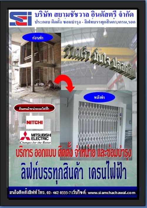 บริการ จำหน่าย ติดตั้ง ประกอบ ลิฟท์บรรทุกสินค้า และเครนไฟฟ้า