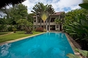 ผ่านบันไดหินอ่อนสู่ชั้นบนคุณจะพบกับห้องนั่งเล่น กรอบหน้าต่างไม้สูงรอบห้อง เปิดรับลมทะเลตลอดวัน พร้อมโต๊ะกลางไม้และกระจกรูปทรงแข็งแรง และโซฟาหนังสีเทา เข้ากับเสาอิฐ จากมุมนี้คุณจะได้ซึมซับวิวอันสวยงามที่สุดของสวน และที่ขาดไม่ได้สำหรับความบันเทิง ก็คือทีวีจอแบน เคเบิลทีวี เครื่องเล่นดีวีดี และระบบเสียงระบบเซอร์ราวด์ ห้องรับประทานอาหาร