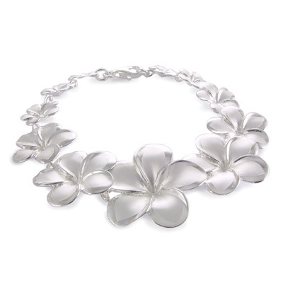 สร้อย ข้อมือเงินคุณนายสุดหรู ด้วยการเรียงร้อยดอกไม้ไว้ทั้งหมดถึง 12 ดอก ในสร้อยเส้นเดียว เอาดอกไม้ขนาดใหญ่เป็นจุดเด่นไว้ตรงกลาง ตามด้วยขนาดไล่ลำดับกันลงมาทั้งสองข้าง ตัวดอกไม้ใช้การพ่นทรายทำให้ตัวสร้อยดูดึงดูดน่าสนใจไม่น้อยเลยทีเดียว **เงินแท้ 92.5% พลอยแท้ สินค้ามือหนึ่ง ราคาส่งขายโดยผู้ผลิต**
