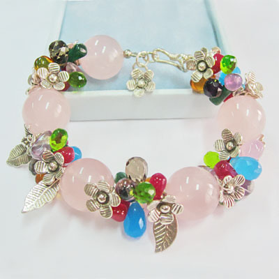 สร้อยข้อมือโรสควอทซ์ประดับหินสี