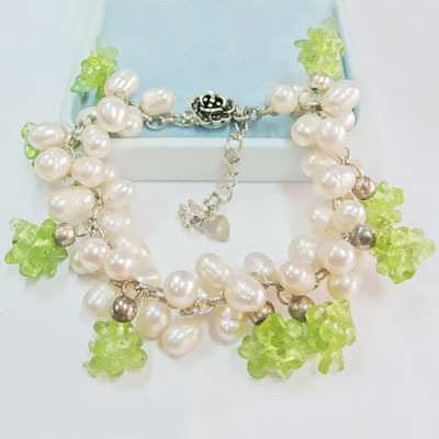 สร้อยข้อมือไข่มุกประดับเพอริโดต์