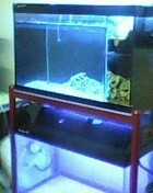 ขายตู้ปลา 2 ตู้ มีชั้นวางพร้อม ติดไฟที่ตู้พร้อม ยางรองตู้สีม่วงอย่างดี