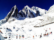 นำท่านมุ่งสู่ ภูเขาหิมะมังกรหยก นำท่านเปลี่ยนนั่งรถภายในอุทยานเพื่อเดินทางสู่จุดนั่งกระเช้าที่ระดับความสูง 3,356 เมตร นำท่านนั่งกระเช้าใหญ่ขึ้นสู่ภูเขาหิมะมังกรหยก สู่จุดชมวิวสูงสุดจากระดับน้ำทะเล 4,506 เมตร ซึ่งท่านสามารถสัมผัสหิมะที่ปกคลุมอยู่ตลอดทั้งปีอย่างใกล้ชิด เพื่อชมทิวทัศน์และธรรมชาติบนจุดที่สูงที่สุด และสวยงามที่สุด ตลอดสองข้างทางที่ขึ้นยอดเขา ทิวเขาแห่งนี้เมื่อมองจากระยะไกล จะเห็นเป็นลักษณะคล้ายมังกรกำลังเลื้อย บนพื้นสีขาวของหิมะที่ปกคลุมอยู่นั้น ดูราวกับหยกขาว ที่ตัดกันสีน้ำเงินของท้องฟ้า คล้ายมังกรขาว กำลังล่องลอยอยู่บนฟากฟ้า เขาแห่งนี้จึงได้ชื่อว่าภูเขาหิมะมังกรหยกให้ท่านได้ชื่นชมและดื่มด่ำกับความหนาวเย็นของธรรมชาติ