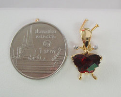 จี้พลอยโกเมน พลอยแท้จากจันทบุรี แกะสลักเป็นรูปผีเสื้อ น้ำหนักพลอย 2 กะรัต ตัวเรือนเป็นทองคำแท้ 90% น้ำหนัก 1.7 กรัม ขนาด 2x1.6 ซม.,มีใบรับประกันสินค้าจากทางร้าน