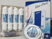 จำหน่ายเครื่องกรองน้ำ Unipure Blue 5 ขั้นตอน ออกแบบสวยหรูเพื่อการแขวนผนัง โดยมีคุณสมบัติเศษในการปรับรสชาติ ยับยั้งแบคทีเรีย เพิ่มแร่ธาตุที่เป็นประโยชน์ต่อร่างกายด้วยไส้กรอง Carbon & Mineralizer ซึ่งคุณสมบัติและขั้นตอนการกรองเป็นดังนี้ ขั้นตอนที่ 1 Sediment Inline 12" กรองสิ่งสกปรกตะกอนขนาดเล็กที่เป็นสารแขวนลอยในน้ำ ขั้นตอนที่ 2 Gac Inline 12" กำจัดสารเคมี กลิ่น สี รส ที่ไม่พึงประสงค์ เช่น คลอรีน ขั้นตอนที่ 3 Resin Inline 12" กำจัดหินปูน ลดความกระด้างของน้ำ ทำให้น้ำมีรสชาตินุ่มนวลชวนดื่ม ขั้นตอนที่ 4 Post Carbon Inline 12" กรองตะกอน ปรับรสชาติ กำจัดสี กลิ่นอีกครั้งก่อนนำไปบริโภค ขั้นตอนที่ 5 Carbon & Mineralizer ปรับรสชาติ กำจัดกลิ่น ยับยั้งแบคทีเรีย เพิ่มแร่ธาตุที่เป็นประโยชน์ต่อร่างกาย ทั้งชุดพร้อมอุปกรณ์ติดตั้งขายในราคา 1,400 บาท ไม่รวมค่าติดตั้งและจัดส่ง(อุปกรณ์ติดตั้ง 1. ชุดก็อกน้ำ 3 ทาง 2. ก็อกน้ำดี 3.ขายึดก็อกน้ำดี 4.สายยาง 2 เมตร 5.พุ๊กพร้อมน็อตยึดเครื่อง) ***พิเศษ Upgrade เป็นระบบไส้กรอง Ultrafitration Membrane(UF) เปลี่ยนไส้กรอง Inline Post Carbon 12" เป็น UF ในราคา 1,800 บาท