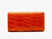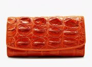 กระเป๋าสตางค์สุภาพสตรี ขนาด 3 พับ หนังจระเข้แท้ การฟอก และย้อมสี ผ่านกรรมวิธีที่มีคุณภาพ จึงทำให้เกิดความรู้สึกถึงความนุ่มมือเมื่อสัมผัส การวางตำแหน่งลายหนัง ได้สวยงามลงตัว