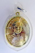 เหรียญทำน้ำมนต์ องค์หลวงพ่อพระราชพรหมยาน(หลวงพ่อฤาษีลิงดำ) วัดท่าซุง จ.อุทัยธานี เนื้อกะไหล่ทอง พ.ศ 2532 (พิมพ์คอนูน)