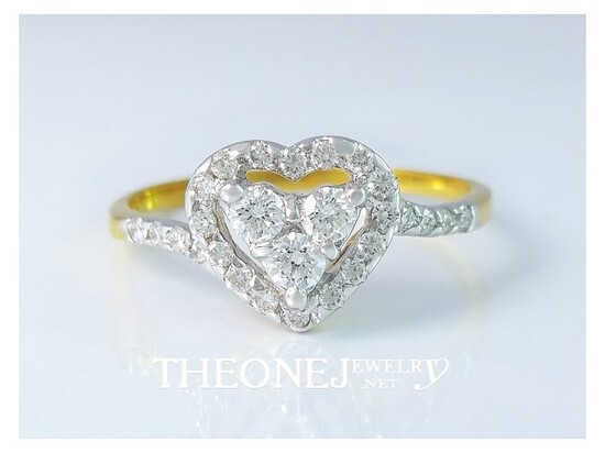 แหวนเพชรเบลเยี่ยมคัท ดีไซน์หัวใจ น้ำหนักเพชรรวม 0.28 กะรัต Color 97