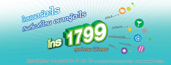 โทร. 1799 ทุกคำถาม มีคำตอบ 3 บาท/นาที ทั่วประเทศ