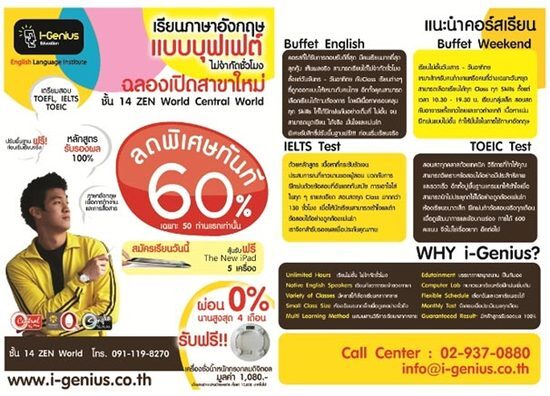 Facebook: http://www.facebook.com/IGeniusZenWorldI-Genius Education @ZEN (Central World) สถาบันสอนภาษาอังกฤษแนวใหม่ ลดราคา 60%ฉลองเปิดสาขาเฉพาะ 50 คนแรกเท่านั้น !!!