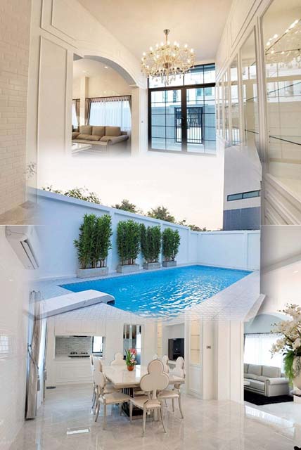 Adjecent to Amata Spring Country Club for rent Luxury Mansion 3Storeys Rattanakorn Market 2km. 5bed Sukprayun luxury pool villa good atmosphere 92sq.wa. 450sq.m. 79,999-99,999B-M very spacious 6bath 5parking 8A/C quiet private Sripatum Village Chonburi.