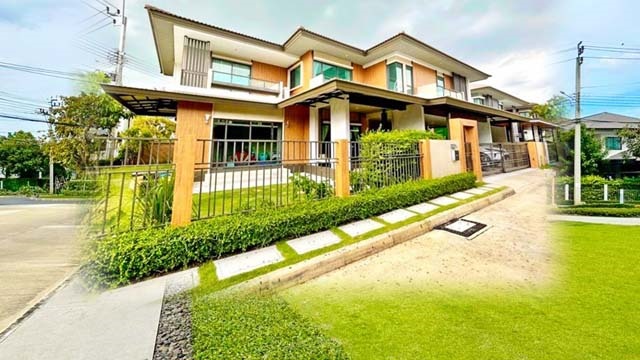 Pakkret Hospital2 350m. 6bed DBS Inter School 5km. on the main road 345 2-storey luxury mansion the largest in the project private corner house 106 sq.w.360 sq.m. public park location quiet 6 bath fully furnished luxurious comfortable complete utilities 114,999 B-M Robinson Ratchaphruek 1.5 km. convenient transportation Ratchaphruek Road.Burasiri