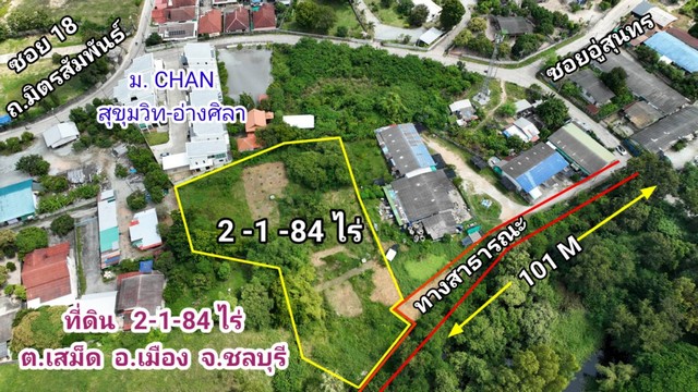 ขายที่ดิน 2-1-84 ไร่ ต.เสม็ด อ.เมือง ชลบุรี ถนนมิตรสัมพันธ์ซอย18 เหมาะสร้างบ้านอยู่หรือพัฒนาโครงการบ้าน มีโครงการหมู่บ้านรายรอบ ผังสีแดง