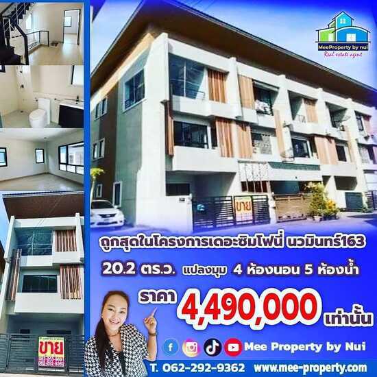 ขาย/เช่า ถูกสุดในโครงการหมู่บ้านเดอะซิมโฟนี่ The Symphony ทาวน์โฮมแนว Modern 3 ชั้นที่ออกแบบมาเป็นแนว Modern โครงการอยู่ในซอยนวมินทร์ 163 พท.20.2 ตร.ว. ราคา 4,490,000 บาท