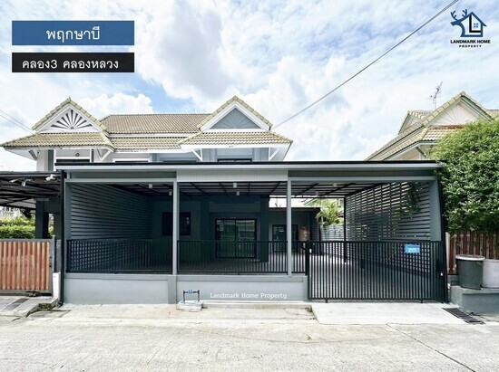 lN-032 ขายบ้านแฝด 2 ชั้น พฤกษาบี คลอง3 คลองหลวง พื้นที่ 45 ตรว 4นอน 2น้ำ มีห้องนอนชั้นล่าง จอดรถในบ้านได้ 2 คัน