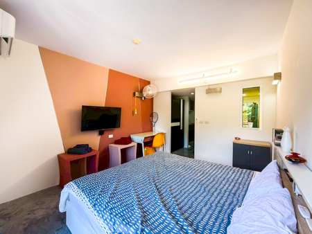 เฟอร์นิเจอร์ครบครัน: ตู้เย็น, ตู้เสื้อผ้า, โต๊ะทำงาน, ทีวีจอใหญ่, เตียงขนาด 5 ฟุต