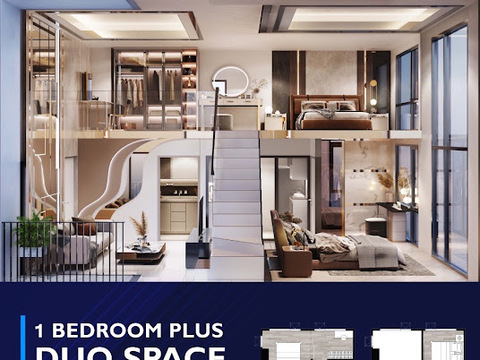 ห้อง Duo space ไซส์ใหญ่ มีหน้าต่างสูง 4.2 m ไม่อึดอัด โปร่งโล่งเหมือนอยู่บ้าน