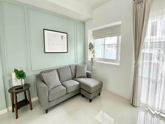 เนื้อที่ 21 ตารางวา พื้นที่ใช้สอย 122 ตารางเมตร จำนวน 2 ชั้น 3 ห้องนอน 3 ห้องน้ำ จอดรถ 2 คัน