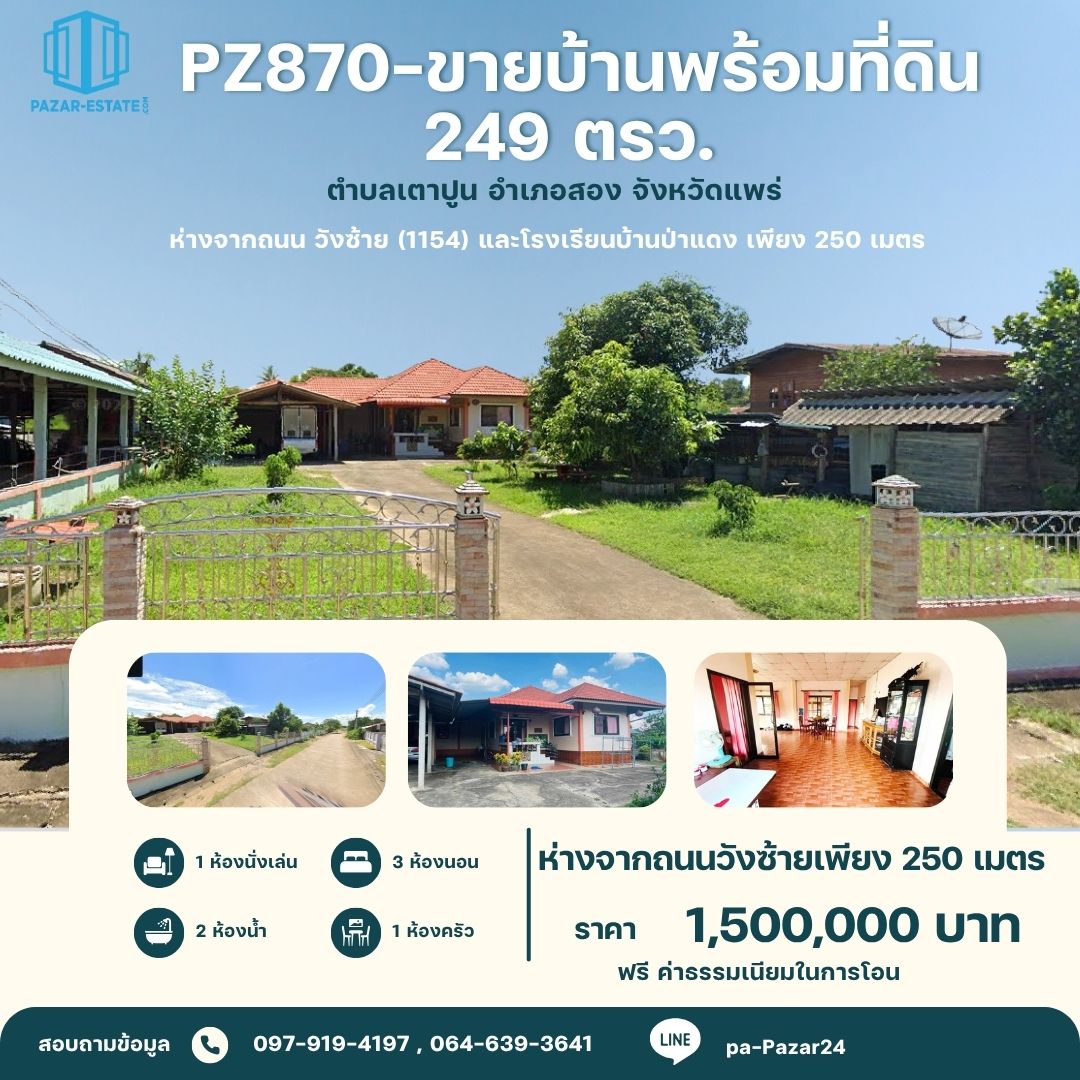 PZ870 : ขายบ้านพร้อมที่ดิน 249 ตรว. ห่างจากถนน วังซ้าย (1154)