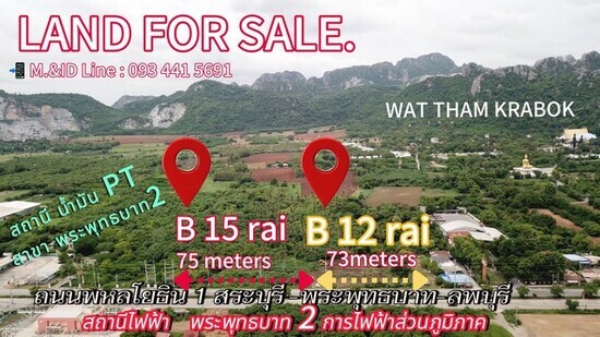 ขายที่ดิน15ไร่ และ 12 ไร่ ติดถนนพหลโยธิน1พระพุทธบาท สระบุรี ลพบุรี พิกัด ตรงข้ามสถานีไฟฟ้าพระพุทธบาท