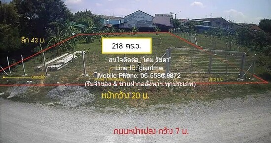 จุดเด่นของทรัพย์: เป็นที่ดินถมแล้วขนาดเล็ก ทรงสี่เหลี่ยม ที่มีราคาถูกที่สุดในตลาด อยู่ในซอยไม่ลึก และใกล้ถนนหลัก มีถนนหน้าที่ดินกว้าง 7 ม. พร้อมกับอยู่ใกล้สิ่งอำนวยความสะดวกในทุกมิติ เหมาะสำหรับทำบ้านพักอาศัยส่วนตัว หรือ Home Office