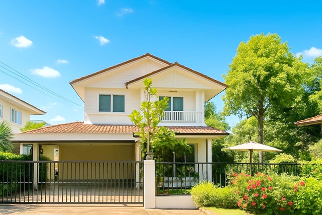 MRTตลาดบางใหญ่ 3.52กม. โลตัส คลองถนน 2.7 กม. คลองบางไทร ให้เช่าบ้านเดี่ยว 2 ชั้นสุดหรู 54 ตร.วา.จัดเต็มเฟอร์ฯ ร่มรื่น ติดสวน 3 นอน 3 น้ำ