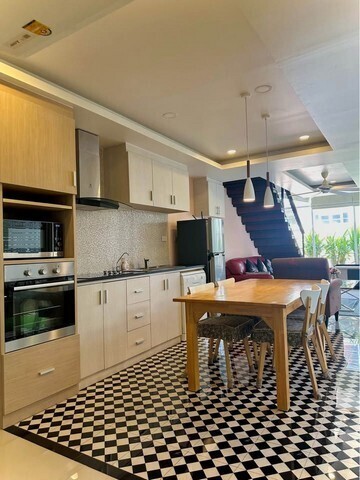 • ห้องครัวแบบเปิดโล่งทันสมัยพร้อมตู้เย็น ไมโครเวฟขนาดใหญ่และเตาอบแยกต่างหาก หม้อไฟฟ้า เครื่องล้างจาน เครื่องกรองน้ําและเครื่องทําน้ําอุ่น