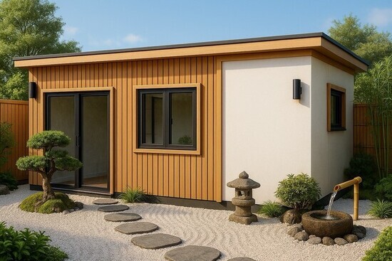 - ผนังกรุระแนงไม้ พื้นกระเบื้องยาง