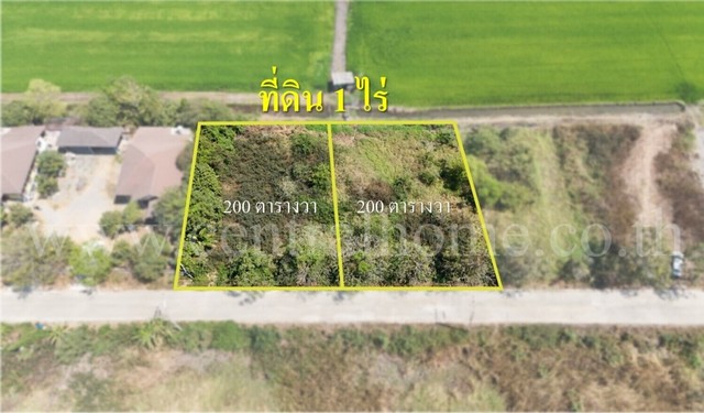 - ที่ดินเปล่า 1 ไร่ แบ่งเป็น 2 แปลงละ/200 ตารางวา