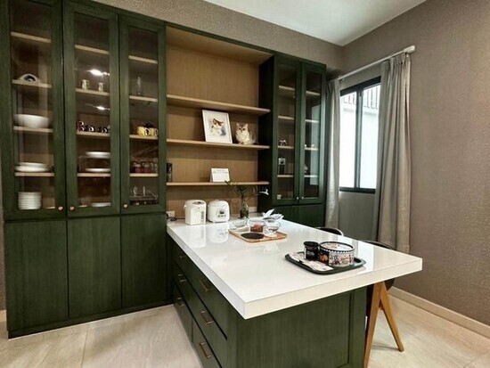 - ชั้น 1 - จอดรถ 2-3 คัน , ห้องรับแขก , พื้นที่ทานอาหาร, ครัวปิด ครบเครื่องด้วย เครื่องใช้ไฟฟ้าเกรดคุณภาพ อาทิ SMEG , Electrolux , Build in บางส่วน เช่น ตู้เก็บของ และ ชั้นวางทีวี