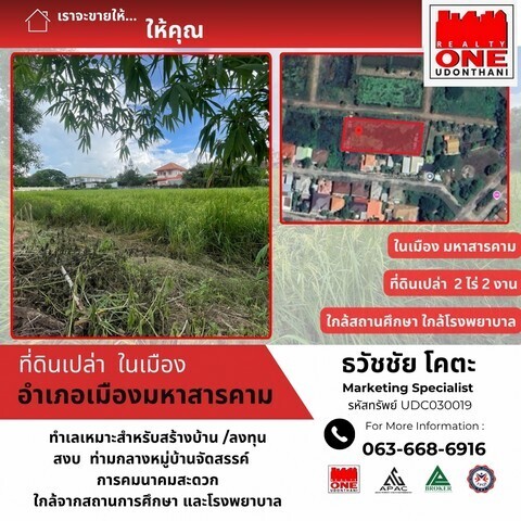 ขายที่ดินเปล่า 2 ไร่ 2 งาน 2 ตารางวา ถนนโยธาธิการและผังเมือง เขตเทศบาลเมืองมหาสารคาม