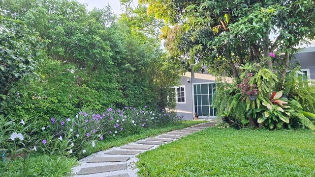 Nikhom Gateway intersection Wat Kutchi 100 m. for rent luxurious single-story house large house 100 sq.wa. 300 sq.m. quiet atmosphere shady 2 bed 3 bath 17,999 B-M. fully furnished electrical appliances convenient parking suitable for a retirement home One Night Gateway Market 2.1 km. Phanom Sarakham - Paet Riu