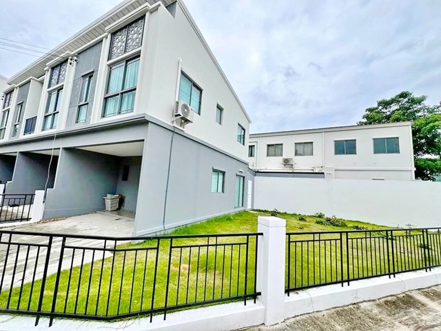 300 m. from Singapore International School (SISB). Chaengwattana WatSaphanSung Tops Chaiyaphruek 1.7km. Luxury 2-story townhouse for rent-sale corner unit 224 sq.m. 28sq.wa. 5.9 million baht. Brand new furnished 3 bed 2 bath With a spacious lawn 25,998B-M. Ideal for a home office or residence. Phuang Sawang Market 345 2.2km. Easy access MRT PakKret 4km.