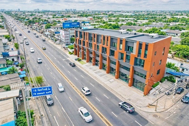 อาคารพาณิชย์หรูสูง 3.5 ชั้น ตั้งอยู่ติดถนนใหญ่ มองเห็นเด่นชัด เหมาะสำหรับธุรกิจหน้าร้านและสำนักงาน