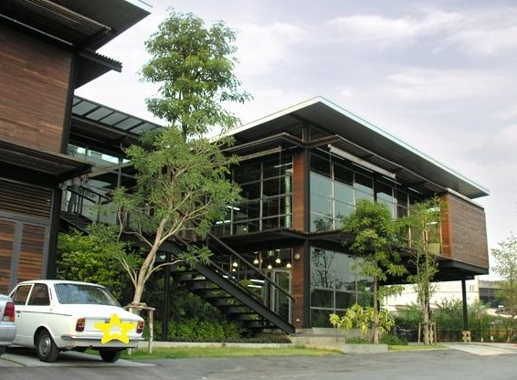 - อาคารแฝด สูง 2 ชั้น 2 อาคาร เชื่อมต่อกันด้วยพื้นที่ส่วนกลาง