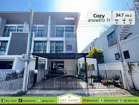 ขายทาวน์โฮม 3 ชั้น หลังมุม หมู่บ้านโคซี่ ลาดพร้าว 71 : Cozy LatPhrao 71 ซอยสตรีวิทยา 2 ซอย 10 การเดินทางสะดวก เข้า-ออก ได้หลายเส้นทาง ใกล้รถไฟฟ้า เนื้อที่ 34.7 ตร.ว. ขายเพียง 6,700,000 ล้านบาท