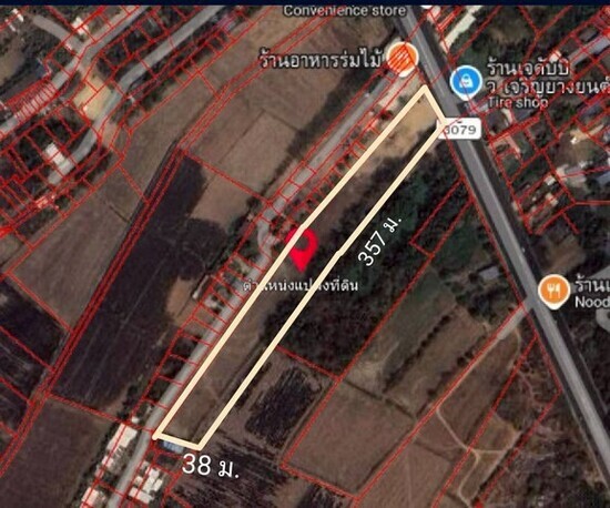 รูปแปลงสวย: หน้ากว้างประมาณ 38 เมตร x ลึก 357 เมตร