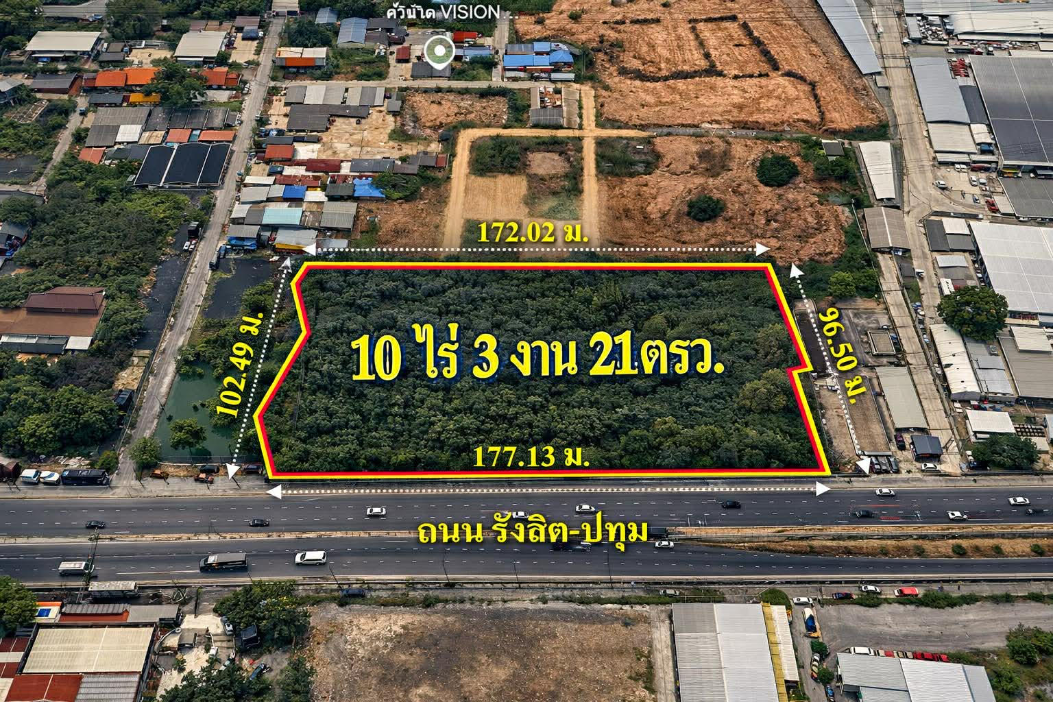 ขายที่ดินติดถนน รังสิต ปทุมธานี 10 ไร่ 3 งาน 21 ตารางวา